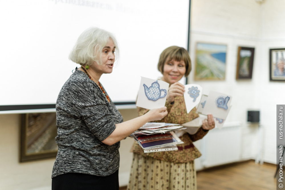 Наталья Рычкова, преподаватель кружевоплетения показывает первые работы учеников